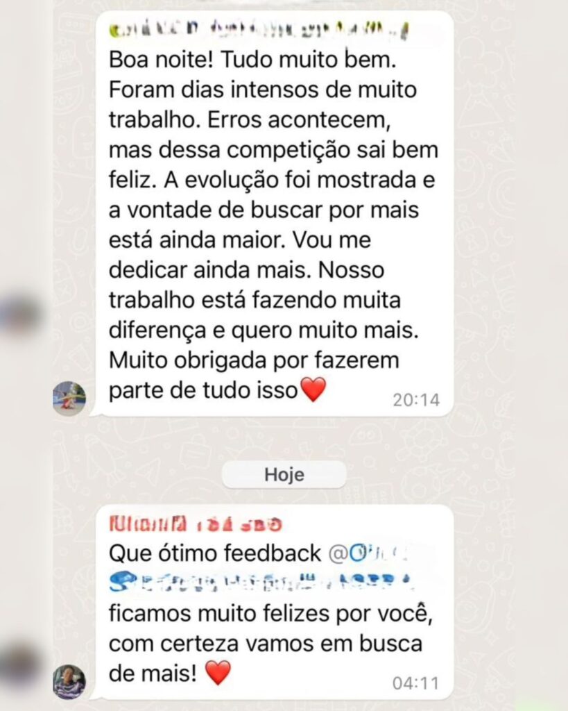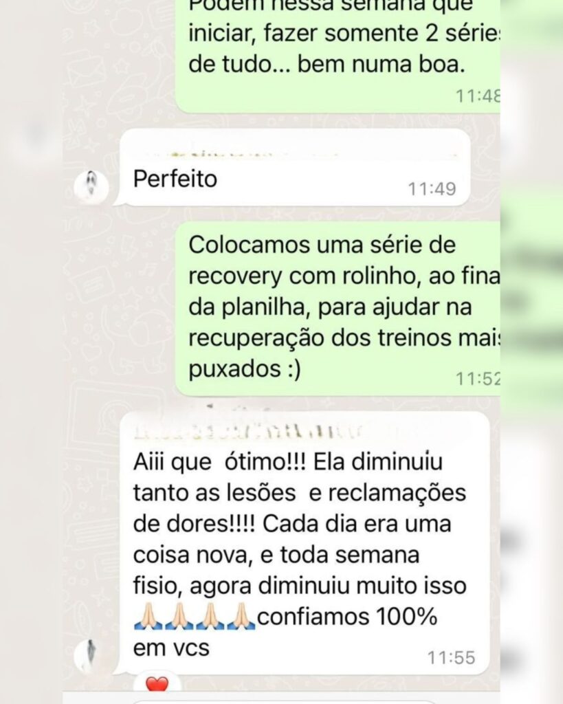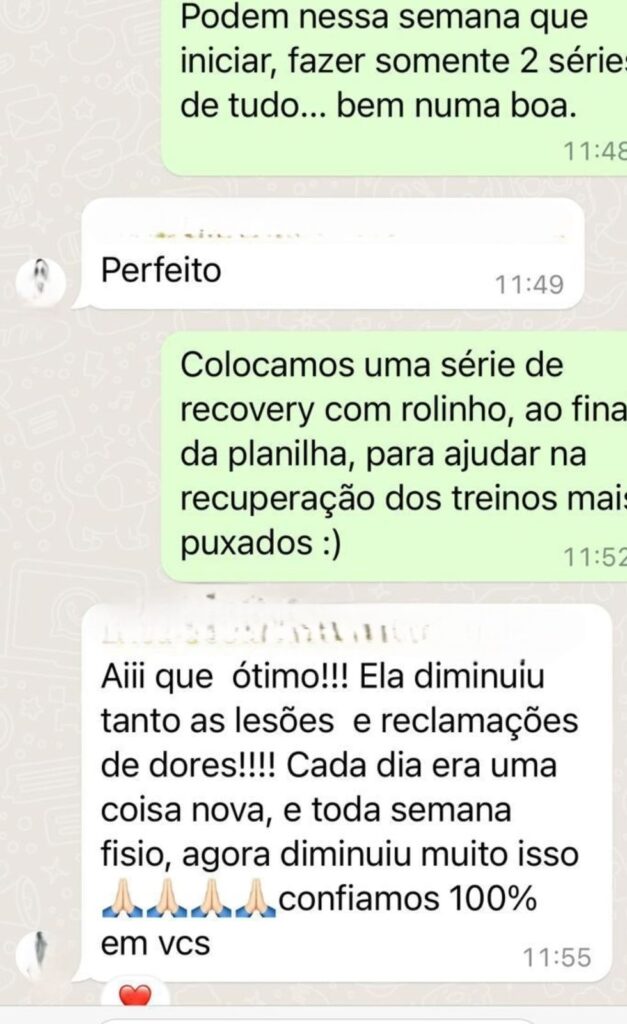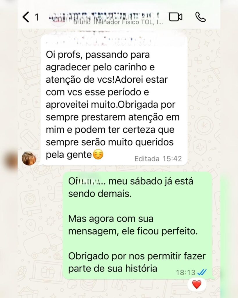 🔹 Acompanhamento Diário e Correções Técnicas Você nunca treina sozinha. Estamos sempre disponíveis para ajustar seu treino, corrigir movimentos por vídeo e garantir a sua evolução com segurança.